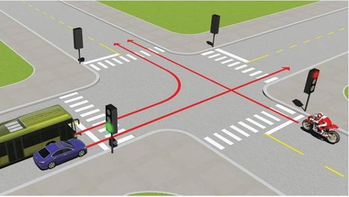 Theo tín hiệu đèn, xe nào được phép đi?