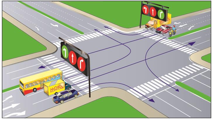 Các xe đi theo hướng mũi tên, xe nào chấp hành quy tắc giao thông?