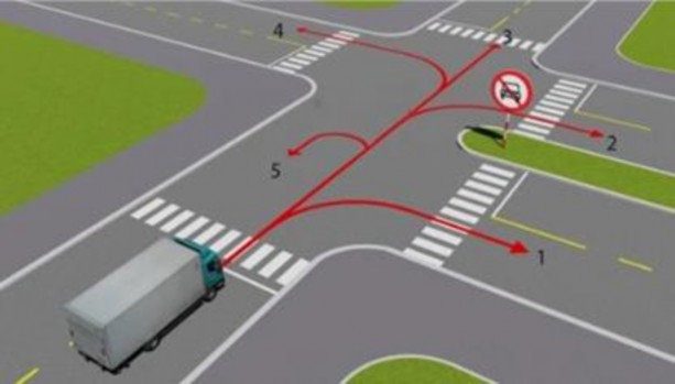 Theo hướng mũi tên, những hướng nào xe tải được phép đi?