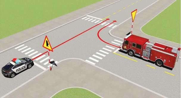 Theo hướng mũi tên, xe nào được quyền đi trước?