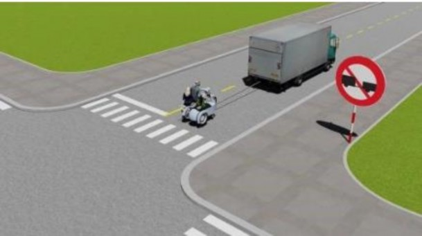 Trong các trường hợp dưới đây, để bảo đảm an toàn khi tham gia giao thông, người lái xe mô tô cần thực hiện như thế nào?