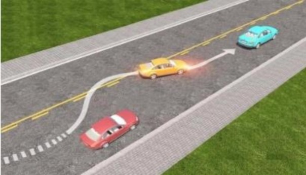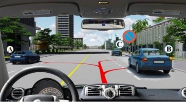 Trong tình huống dưới đây, xe con màu vàng vượt xe con màu đỏ là đúng quy tắc giao thông hay không?